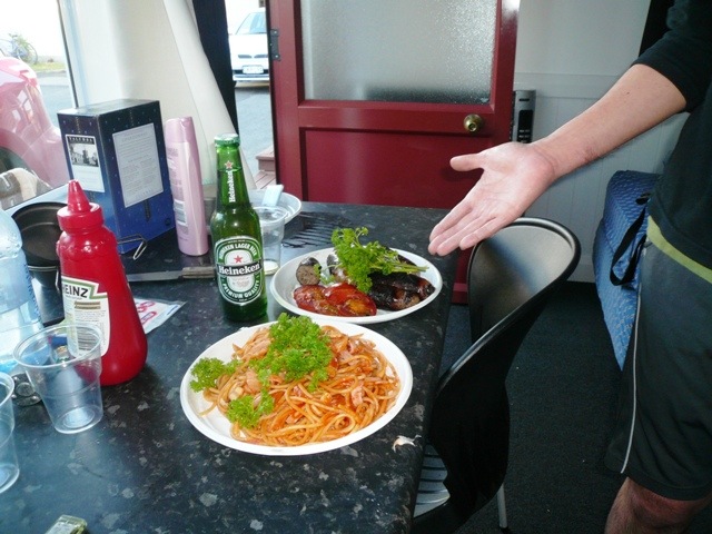 ということで、夕方にはホリディパークに戻ってきました。ニュージーランドの夏は日照時間が長く、9時ごろになってやっと薄暗くなってきます。夕方からゆっくり食事を作っても、明るい戸外での夕食が可能。
